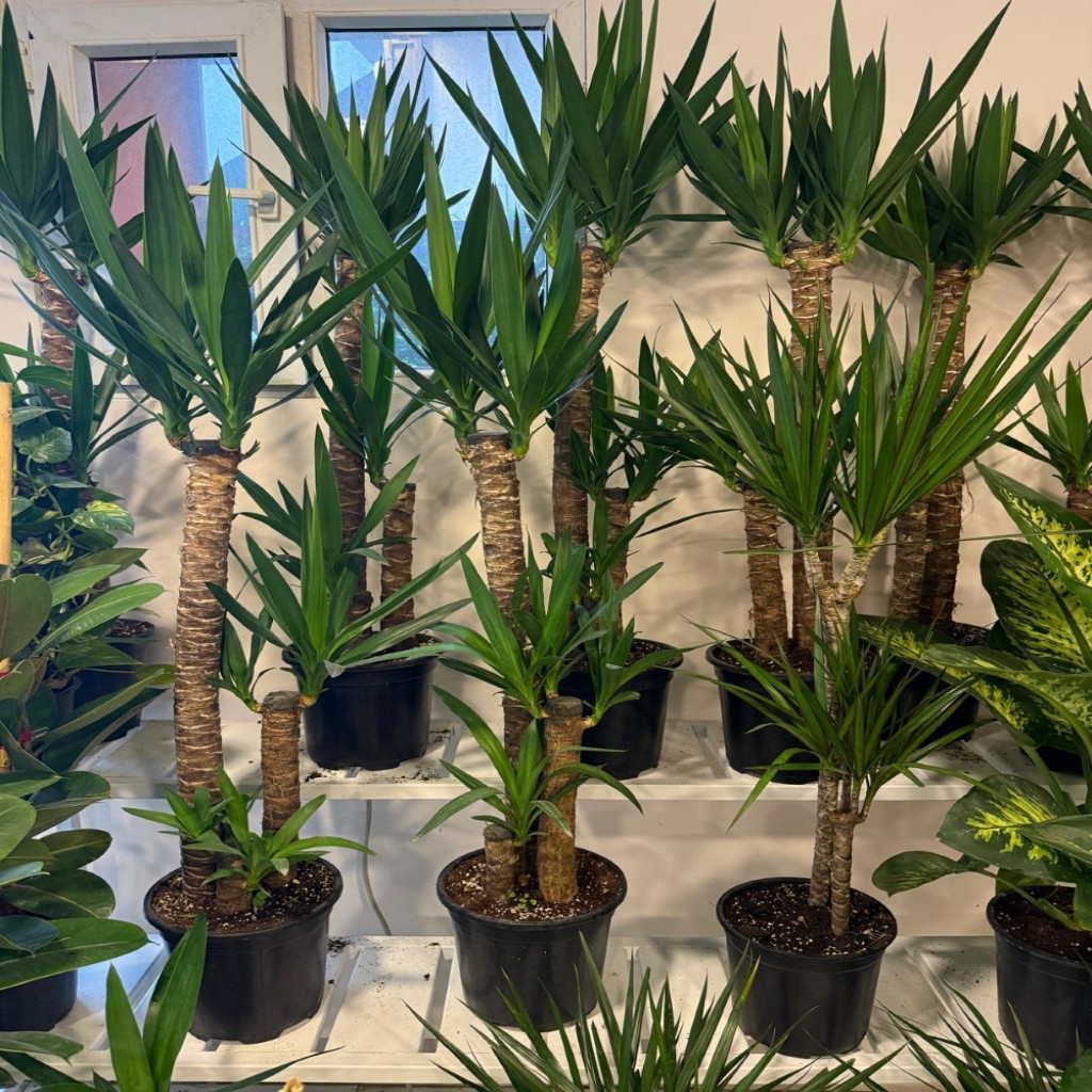İki gövdeli Yucca (Yuka/Avize Çiçeği),kalın odunsu gövdeleri ve dik, sivri, kılıç şeklindeki yapraklarıyla bilinen, az bakım gerektiren dayanıklı ve tropikal bir salon bitkisidir. Genellikle 80-120 cm boylarında olan bu bitki, aydınlık/direkt güneş alan yerleri sever, az su ister ve havayı temizleme özelliğiyle ev/ofis dekorasyonunda şık bir tropik etki yaratır.